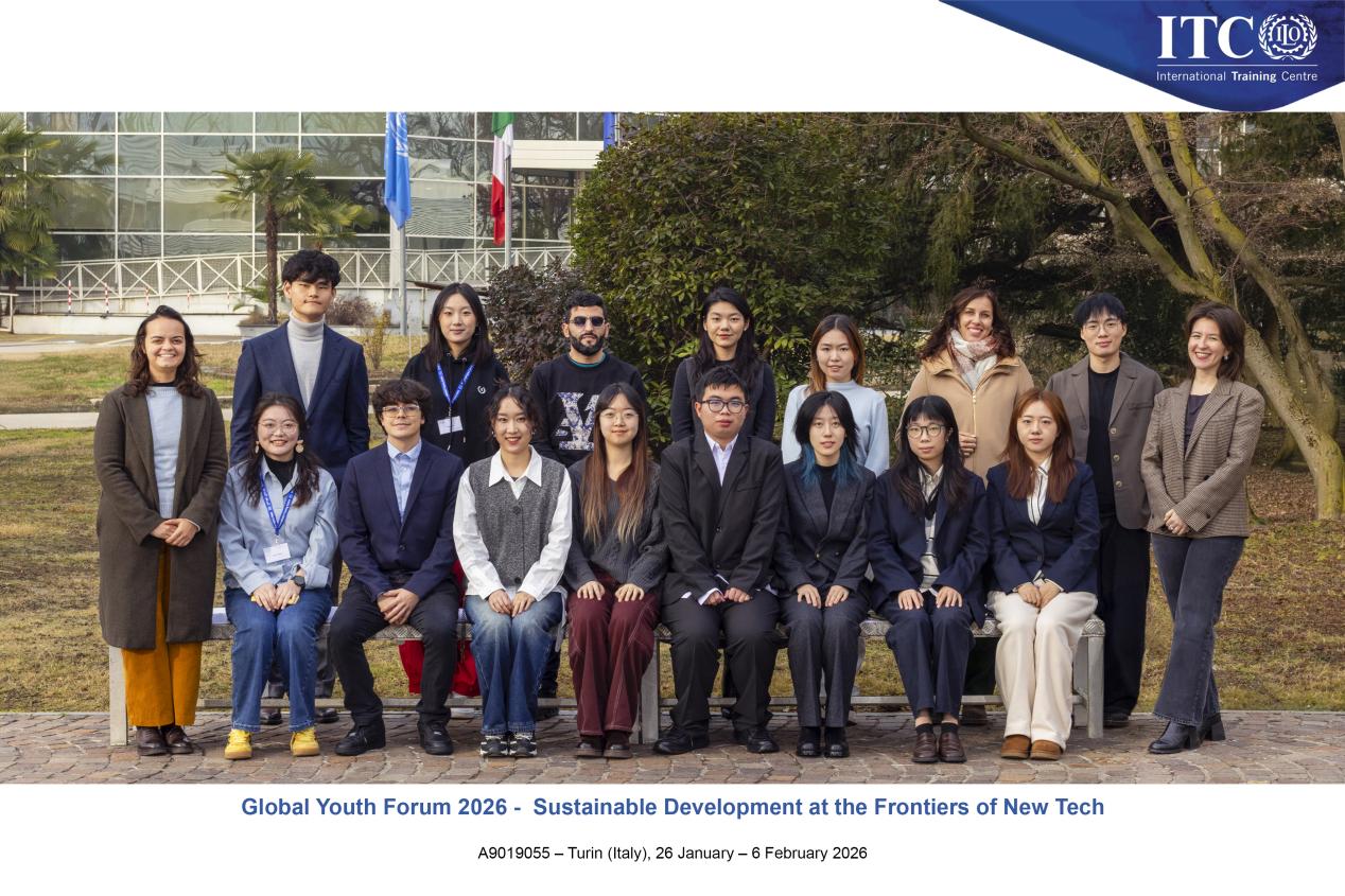 2名本科生及1名研究生组成的研学团赴意大利都灵国际劳工组织国际培训中心(ITCILO),参加了“2026全球青年论坛:可持续发展与新科技前沿”。在《联合国80周年未来契约》强调新兴技术驱动创新治理、国际社会加速推进2030年可持续发展议程的背景下,本次论坛聚焦量子技术、生物技术及人工智能等前沿科技对劳动世界和可持续发展的影响,旨在为青年提供探讨政策影响与治理结构的平台,培养具备全球胜任力与战略思维的高层次人才。
