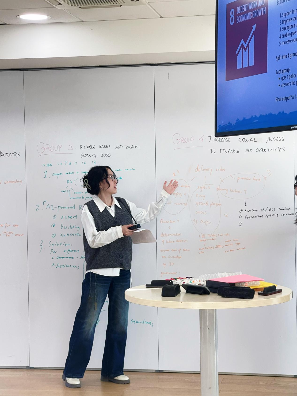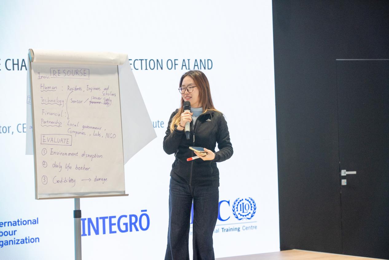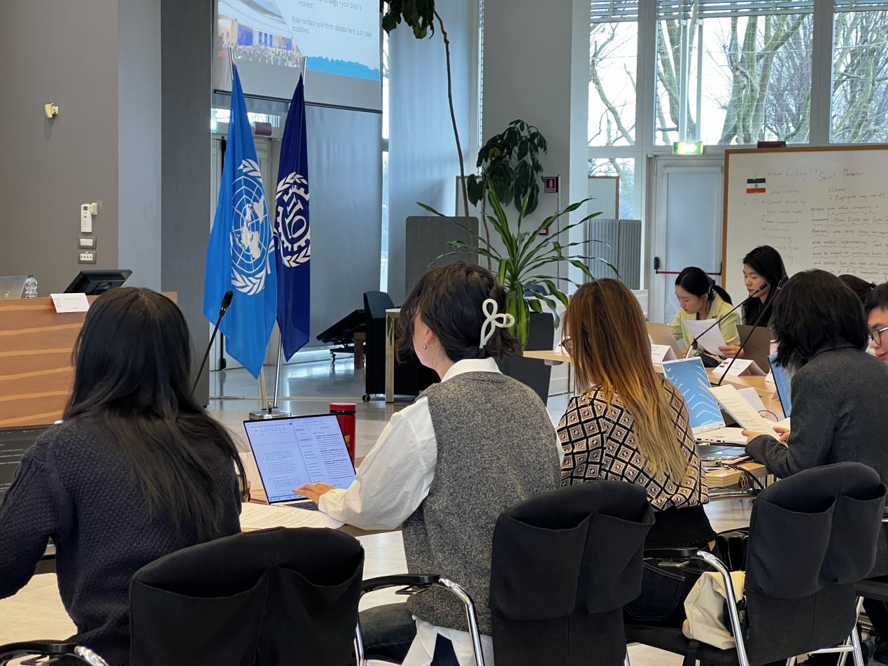 项目设计贯穿论坛全程,成为学生将前沿议题转化为实践方案的核心载体。在两周的学习中,日本成人电影 任思齐、王晓雅同学与组员聚焦SDG8(体面工作与经济增长),完成项目“NexusCert Pro: A Digital Skills Certification & Decent Work Platform for Gen-Z in Northwest China”,探索通过数字技能认证促进青年就业的可行路径;孟晨曦同学所在小组则围绕循环经济理念,提出“BIO LOOP-From Waste to Warmth”项目,利用生物技术将农业废弃物转化为供暖材料,回应气候与能源挑战。除项目设计外,每日课程均嵌入高强度互动:网络外交主题日中,同学们分属三个阵营,模拟冲突场景,在危机推演中学习谈判与信任构建;国际劳工大会模拟环节,学生分别代表政府、雇主与工人三方,沉浸式体验国际劳工标准的谈判过程,深刻理解多边治理的复杂性与协作艺术。论坛期间,ITCILO官员还专门举办联合国职业发展工作坊,为学生勾勒国际组织职业路径,鼓励青年投身全球治理事业。