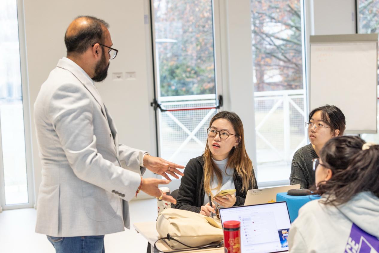 论坛以六大主题日为载体,构建了系统化的前沿知识体系。在“AI驱动的机器人日”,Dev Aditya结合产业实践,剖析AI与机器人融合如何推动可持续发展,并探讨项目落地的关键因素;“量子计算日”中,Dimitri Van Esch从创业与治理双重视角,阐释量子技术对劳动世界的潜在重构;“新兴技术外交日”里,Alessandro Arduino教授深入分析网络外交与AI治理的地缘政治动态,引导学生思考技术政策的全球协调。生物技术专题讲座中,Ivonne Castiblanco博士以“彩虹代码”框架梳理生物技术的多元应用,从基因编辑到生物修复,从可食用疫苗到沙漠治理,揭示技术背后的伦理张力与社会选择;神经技术专场则探讨脑机接口与人类增强的边界,引出“人类数据”作为新治理对象的深刻命题。AI作为跨领域技术,贯穿始终,被反复讨论其在赋能其他技术的同时,如何确保以人为本、促进体面劳动。12场专题研讨与专家对话,帮助学生建立起从技术原理到治理逻辑的系统认知。